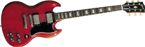 Short for solid guitar, Gibsons SG Standards featured a much thinner body made from solid mahogany, with pointed horns, beveled edges, no body binding and distinctive twin cutaways that offered easier access to the guitars higher frets, along with exceptional resonance, superior tone and greater sustain. The new models were also fitted with one of four vibrato tailpieces that were used in the early 1960s. The SG Standard model was also fitted with a new wing-shaped, 5-ply black pickguard, and its new 22-fret mahogany neck with rosewood fingerboard and slim-taper profile was quickly recognized as one of the fastest guitar necks in the world.Compare Gibson SG Standard Reissue VOS Electric Guitar, Faded Cherry Sale Low Price